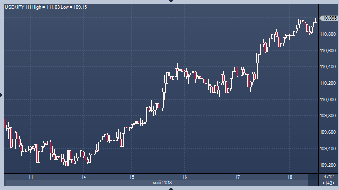 Иена снижается, неся максимальные недельные потери с 2014 года, так как устойчивый рост доходности казначейских облигаций на фоне сильных экономических данных США продолжает поддерживать доллар. Японские облигации выросли в конце дня; данные, вышедшие во время утренней сессии, показали, что инфляция замедлилась второй месяц подряд. Пара USD/JPY выросла на 0.1% в пятницу и на 1.4% за неделю до 110.92; пара коснулся нового 4-месячного максимума 111.01 ранее сегодня. Восьмая неделя подряд снижения станет для иены самой длинной полосой спада с октября 2014 года. В США доходность 10-летних облигаций вырастала до 3.1261%, максимального уровня с июля 2011 года, а сейчас находится на 3.10%, прибавляя 13 б.п. за неделю; 30-летняя доходность составляет 3.26%, самый высокий показатель с сентября 2014 года.