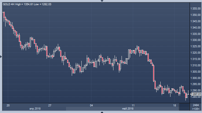 Сейчас золото торгуется на уровне $1288.6, поблизости к минимальной отметке в этом году. Трейдеры распродают металлы и другие активы, которые традиционно относятся к «безопасным гаваням», из-за ослабления опасений по поводу торговой войны между Китаем и США. На прошлой неделе золото подешевело на 2.2%, что стало наихудшим пятидневным падением с начала декабря 2017 года.
