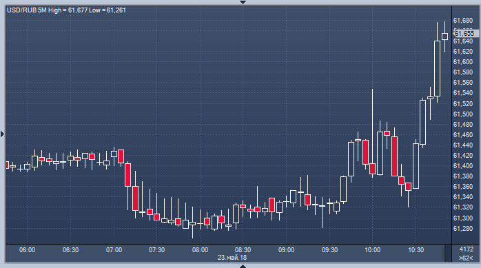| 23.05.18 09:59 | Алор Брокер: сегодня курс доллара к рублю может опуститься ниже 61, но вряд ли там останется | 23.05.18 11:30 | Евро обновил минимум к доллару после выхода слабых данных |