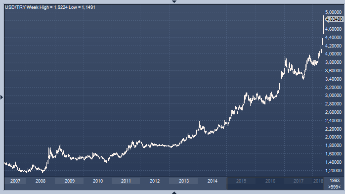 Напомним, события в Турции развивались по следующей спирали. Сильный экономический рост в стране в предыдущие годы спровоцировав увеличение дефицита платежного баланса Турции и усиление инфляции до двузначного уровня. Ооднако все попытки ЦБ пресечь раздувание цен в стране пресек президент страны Тайип Реджеп Эрдоган, что породило сомнения в самостоятельности Банка Турции. ЦБ все же повысил ставки более месяца назад, причем больше, чем ожидали, однако это только усугубило положение лиры, поскольку ее продажи приняли массовый характер. Спекулятивный момент также имеет основания, поскольку в июне в стране пройдут президентские выборы, а действующий президент находится в конфронтации с нынешним режимом США, в основном по курдскому вопросу. Далее масла в огонь подлило заявление международного рейтингового агентства Fitch, которое выразило опасение намерением президента страны Тайипа Эрдогана в случае победы на президентских выборах 24 июня ужесточить контроль над экономикой. По словам Fitch, это грозит непредсказуемостью денежно-кредитной политики в Турции и может негативно повлиять на суверенный кредитный рейтинг страны.