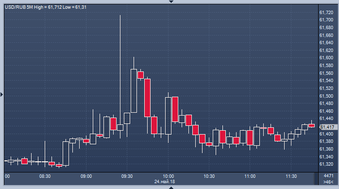 К 11:20 мск котировки пары доллар/рубль расчетами «завтра» были вблизи отметки 61.40 за доллар - рубль теряет 0.2% от уровней закрытия вторника. Пара евро/рубль расчетами «завтра» к этому времени находилась у отметки 72.02, и здесь рубль теряет 0.4%. На форексе доллар США дешевеет на 0.3% к корзине из 6 валют (93.77) и в паре с евро ($1.1733), на 0.4% - к японской иене (109.60). Доллар сдал позиции после публикации протокола заседания Федрезерва, тональность которого была воспринята инвесторами как мягкая. Падение доллара, если оно получит развитие, поддержит рубль и другие валюты EM.