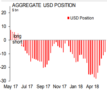 Как следует из последних данных CFTC, на неделе до 22 мая спекулянты продолжили покупать доллар против большинства основных валют, в результате чего объем чистой короткой позиции по нему снизился на $2.6 млрд до нового многомесячного минимума в $8.7 млрд.