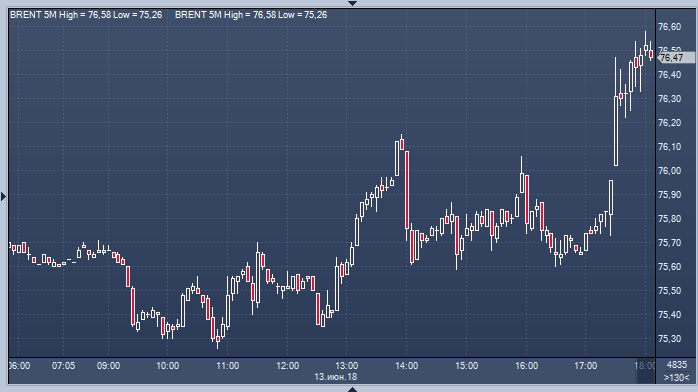 Цены на нефть положительно отреагировали на данные о сокращении запасов нефти в США на прошлой неделе. Котировки августовских фьючерсов на нефть Brent на лондонской бирже ICE Futures к 17:57 мск повысились на $0.54 - до $76.42 за баррель. Нефть WTI с поставкой в июле на торгах Нью-йоркской товарной биржи (NYMEX) дорожает на $0.12 - до $66.48 за баррель. Далее цены на нефть будут реагировать на итоги заседания ФРС, поскольку курс доллара США может заметно измениться.