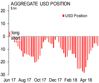 Объем чистого шорта по мексиканскому песо удвоился, и теперь позиционирование по нему является наиболее медвежьим за последний год. Наличие серьезных медвежьих факторов (падение ниже отметки 20 к доллару, выборы и переговоры по NAFTA) предполагают высокую вероятность того, что в ближайшие недели спекулянты продолжат продавать.