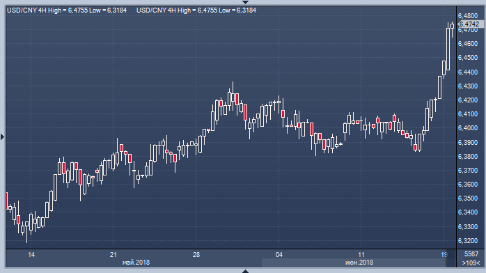 Рыночный континентальный курс юаня упал на 0.30% до 6.4561 доллара США по состоянию на 14:22 в Шанхае; оффшорный юань снизился на 0.11% до 6.4621. Фондовый рынок Шанхая упал почти на 4% до двухлетнего минимума во вторник, поскольку угроза новых пошлин США в отношении китайской продукции усилила риск полноценной торговой войны между двумя странами.