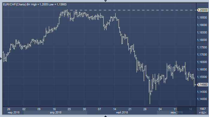 «Паре не удалось закрепиться выше старого «пола» ШНБ (chf1.20), и она ощутимо подешевела», - пишут аналитики банка. - «Причина этого заключается в росте премии за риск владения долгом Италии и нерешительности ЕЦБ. По нашему мнению, в ближайшее время оба этих фактора не позволят евро/франку вернуться выше chf1.20. В более долгосрочной перспективе (к концу текущего года) пара должна начать расти в преддверии повышения ставок ЕЦБ и сохранения статус-кво ЦБ Швейцарии. Наши обновленные прогнозы по евро франку выглядят так: