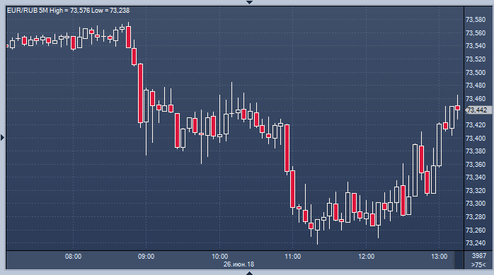 - 73.4087 рубля за 1 евро