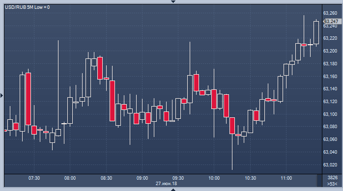 Пара доллар/рубль расчетами “завтра” к 11:15 мск была вблизи 63.21, котировки евро/рубль находятся вблизи 73.61. На рынке нефти баррель Brent набирает 0.7% и оценивается в $76.84, что близко от двухнедельного максимума 76.93, достигнутого чуть ранее. Развивающиеся и сырьевые валюты торгуются без резких колебаний в узких диапазонах с начала дня с преобладанием отрицательной динамики. В фокусе внимания остается тема напряженных отношений Вашингтона и его торговых партнеров, а также саммит ЕС 28-29 июня. Последний важен для российского рынка с точки зрения продления европейский санкций в отношении РФ, а также развитие ситуации с предполагаемой в июле встречей президентов РФ и США.