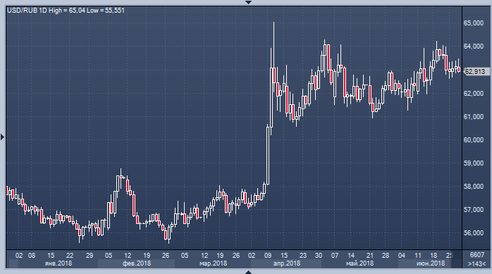 Валютные стратеги Райффайзенбанк считают, что следующий месяц будет непростым для российской валюты, и отметка в 64 рубля за доллар остается для нее точкой притяжения. В банке уже говорили о снижении валютной ликвидности в банковской системе России, и предупреждают, что в следующем месяце ситуация может ухудшиться. Они ожидают, что в июне дополнительные нефтегазовые доходы бюджета останутся на уровне, близком к майскому, и объем интервенций Министерства финансов России на валютном рынке составит 400 млрд рублей, что вкупе с сокращением позиций нерезидентов в российских активов обеспечит усиление давления на рубль.