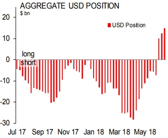 Как следует из последних данных CFTC, на неделе до 3 июля спекулянты продолжили покупать доллар против большинства основных валют, благодаря чему объем чистого лонга по нему достиг годового максимума в $14.8 млрд.