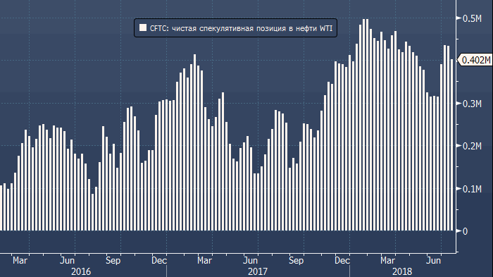 Как следует из последних данных американской Комиссии по торговле товарными фьючерсами (CFTC), за неделю до 17 июля крупные спекулянты сократили объем чистой длинной позиции во фьючерсах и опционах на нефть WTI на 32 248 контрактов до 401 690 контрактов (3-недельный минимум).