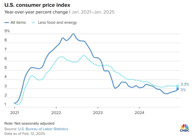 В январе в США неожиданно подскочила инфляция, достигнув 3%, что подтвердило необходимость для Федеральной резервной системы постепенно снижать процентные ставки и оказывать влияние на рынок акций и государственных облигаций.