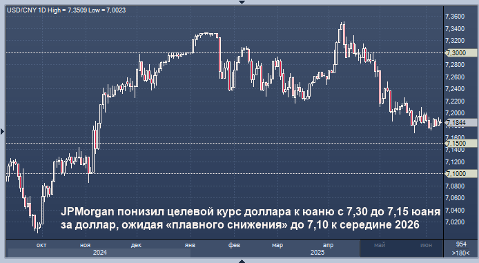 В среду JPMorgan повысил прогноз по спотовой цене юаня на внутреннем рынке Китая на конец года. Причиной стало снижение рисков, связанных с торговой войной между США и Китаем, а также общая тенденция к отказу от использования доллара в международных расчётах.