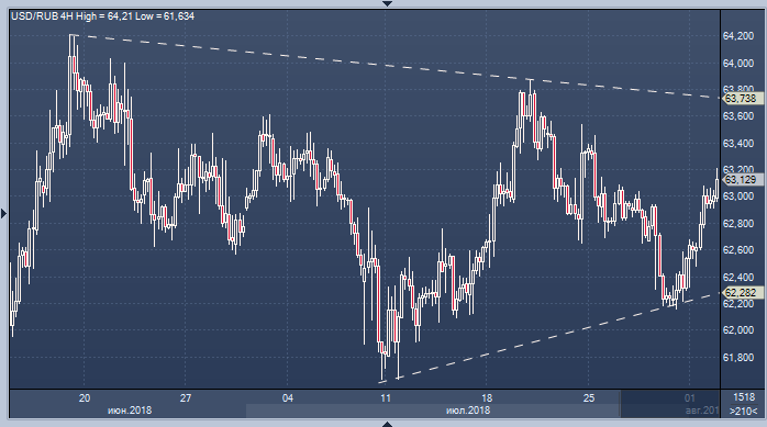 А пока торговая конфронтация продолжается, настроения на мировых рынках ухудшаются. Но рубль держится. Он словно пытается зацепиться за период летнего затишья, за улучшение геополитического фона: призыв Трампа к Мюллеру прекратить расследование, каникулы конгресса и отсутствие заявление американских законодателей на тему новых антироссийских санкций. Да и рост российских акций также служит поддержкой. В общем рубль надеется закрепиться в летнем диапазоне и сильно не упасть. Что может его толкнуть вниз? Мы уже говорили. Во-первых, это девальвация юаня. Прорыв 7 юаней за доллар вызовет панику на финансовых рынках. Рубль пробьет свой диапазон в районе 65 по доллару и пойдет на 70. Во-вторых, новые санкции. Но здесь, как мы уже сказали временное затишье. В-третьих, обвал нефтяных цен. Желания у нефти падать также пока не прослеживается.