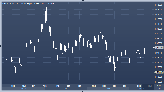 «Рынок учитывает в ценах лишь два повышения ставок Банком Канады до апреля 2019 года (0.25+0.25%)», - пишут аналитики банка. - «Это весьма скромные ожидания, учитывая серьезный рост заработных плат и инфляции в стране. Мы видим риски дальнейшего снижения доллар/луни к C$1.28 в краткосрочной перспективе, а затем и к C$1.20 к концу года, если переговоры по NAFTA закончатся благоприятно, а Банк Канады дважды повысит ставки».