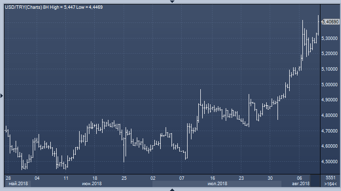 «Турция пока не намерена отпускать пастора Брансона, находящегося под домашним арестом, поэтому мы видим риски введения дополнительных санкций со стороны США», - пишут аналитики Rabobank. - «Ссора с американцами является лишь одним из факторов (большинство из которых внутренние), давящих на курс лиры. С начала года турецкая валюта подешевела примерно на 30%, спровоцировав новый всплеск инфляции».