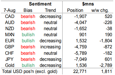 Из последних данных CFTC следует, что на неделе до 7 июля основные изменения в спекулятивном позиционировании происходили в валютах G4 — хедж-фонды более чем вдвое сократили объем чистой длинной позиции по евро и нарастили чистый шорт в фунте.