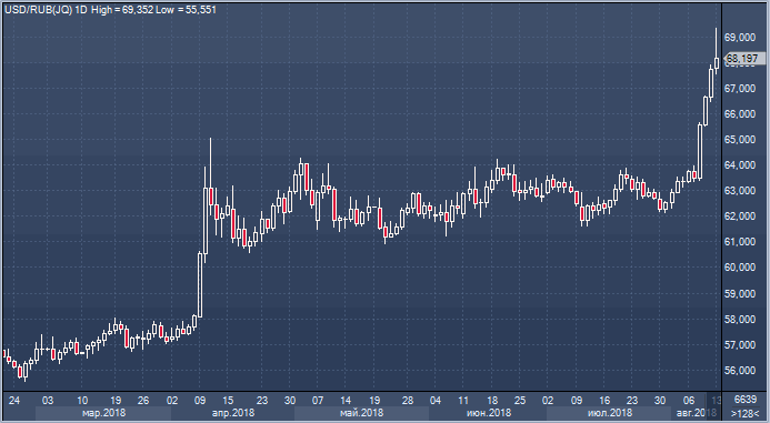 Рубль снизился по итогам прошлой недели более чем на 6% на фоне напряженности с США и дополнительного давления из-за опасений по поводу распространения кризиса в Турции на другие рынки.