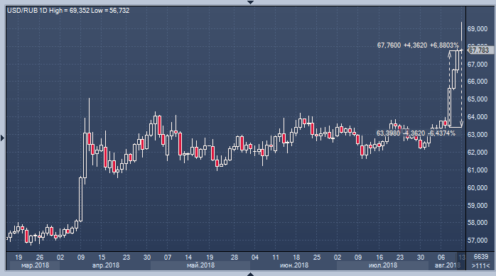Рубль начал новую неделю таким же активным снижением, как завершал прошлую, и в Уралсибе считают, что при таком развитии событий на валютном рынке шансов на смягчение политики Банка России до конца этого года не остается. Эксперты кредитной организации считают, что падение курса российской валюты на 6% обеспечит усиление темпов роста потребительской инфляции на 0.5 процентных пункта, так что ЦБ РФ будет действовать осторожно.