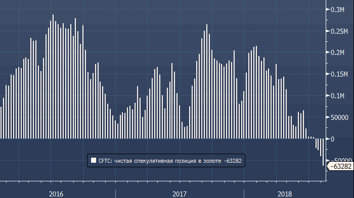 Согласно последним данным американской Комиссии по торговле товарными фьючерсами (CFTC), за неделю до 7 августа спекулянты увеличили объем чистой короткой позиции во фьючерсах и опционах на золото на 22 195 контрактов до 63 282 контрактов (новое рекордное значение за всю историю ведения статистики с 2006 года).