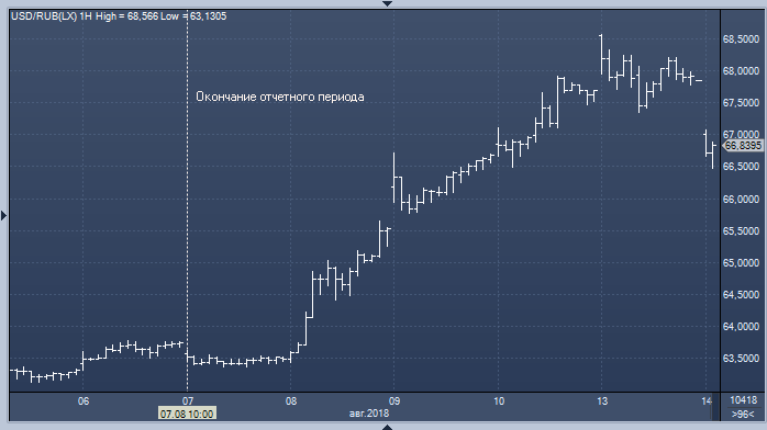 Как следует из последних данных американской Комиссии по торговле товарными фьючерсами (CFTC), за неделю до 7 августа объем чистой длинной спекулятивной позиции во фьючерсах на рубль почти не изменился, сократившись лишь на 78 контрактов до 7 661 контракта (ProFinance.ru: обвал российской валюты начался в среду 8 августа, т. е. на следующий день после окончания отчетного периода).