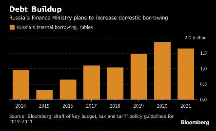 Правительство планирует увеличить заимствования для финансирования планов расходов на инфраструктуру и восстановить Фонд национального благосостояния. В течение следующих трех лет власти планируют занять почти 5 трлн. рублей (74.5 млрд. долл. США). Зарубежные инвесторы начали сокращать вложения в российский долга этой весной на фоне последней волны новых санкций США. Доля нерезидентов в рублевом суверенном долге (ОФЗ) в июле снизилась до 27.5% с 34.2% в марте. В случае массового исхода иностранных держателей местного спроса будет достаточно, чтобы реализовать план заимствований правительства в течение ближайших нескольких лет, хотя доходность повысится, согласно исследованию Центральному банку.
