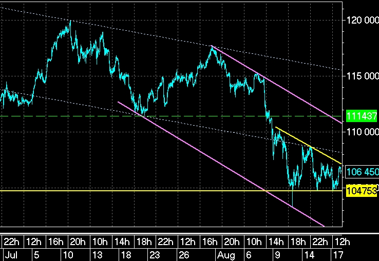 Индекс РТС консолидируется в медвежьем треугольнике. Самое название модели говорит о том, что выход из нее происходит, как правило, вниз. Но ключевое слово здесь — как правило, а не вниз. Если опираться исключительно на приведенные на графике элементы классического графического теханализа, то да — скорее вниз. Но есть ряд факторов, в том числе не относящихся к теханализу в целом, которые выступают за возможный выход цен вверх, в район 110 500-111 000. Во-первых, отыгранность, хотя и частичная, санкционной темы, во-вторых, рост американского фондового рынка, стабилизация ситуации на развивающихся рынках, стабилизация и попытки роста цен на нефть.