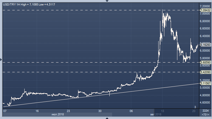 По словам старшего аналитика Commerzbank Акселя Рудольфа, доллар/лира будет консолидироваться ниже недавних рекордных максимумов, достигнутых чуть выше 7.00. На прошлой неделе USD/TRY поднялся до нового рекордного максимума на 7.1310 (согласно данным CQG), прежде чем резко снизиться до минимума прошлой недели на 5.6972, а затем снова подняться.