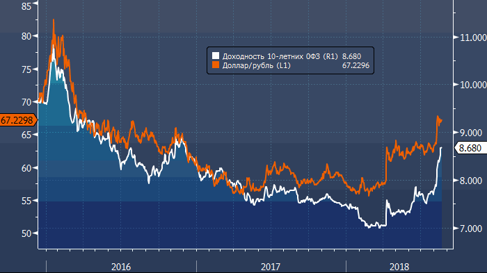Доходность ОФЗ сохраняет высокую корреляцию с динамикой курса доллара к рублю. Эксперты Росбанка отмечают, что, несмотря на долгожданную стабилизацию внешнего фона, инвесторы не спешат вернуться к покупкам ОФЗ. Вчера доходности «коротких» инструментов незначительно снизилась, а «длинных» - так же незначительно выросли.