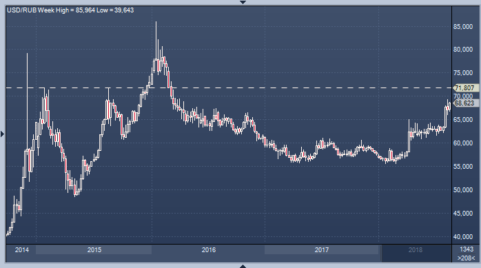 Непонятно, о чем думают власти, но они продолжают покупать валюту и продавать рубль. С точки зрения инфляция, момент подходящий. У ЦБ таргет 4%, а текущая инфляция — лишь 2.6%. Потребительский спрос крайне слаб, прочие «проинфляционные» факторы также ослабли, так что в девальвационном факторе угрозы для инфляции сейчас большой нет. ЦБ вряд ли будет протестовать против планов правительства накопить валютную кубышку на случай ужесточения американских санкций. А в последнем сомневаться совершенно не приходится при той степени, как говорит Трамп — худшей со времен Маккартизма — русофобии, которая несомненно используется как разменная монета перед промежуточными выборами в ноябре.