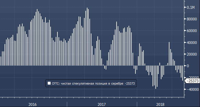 Согласно последним данным американской Комиссии по торговле товарными фьючерсами (CFTC), за неделю до 21 августа спекулянты увеличили объем чистой короткой позиции во фьючерсах и опционах на серебро на 5 186 контрактов до 25 373 контрактов (наиболее медвежья позиция за последние 19 недель).