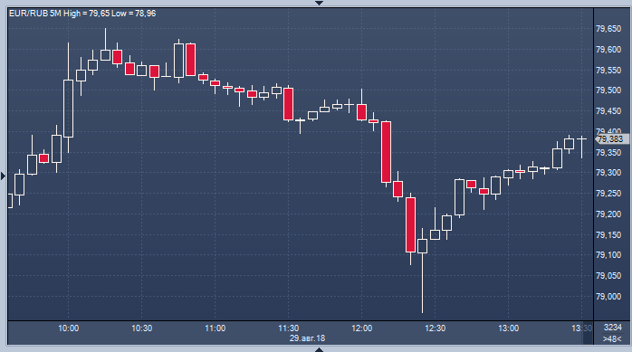 Таким образом, по официальному курсу ЦБ доллар вырос к рублю на 75 копеек, а евро вырос к рублю на 79 копеек по сравнению с официальным курсом среды. Объем торгов на Московской бирже к 13:29 среды составил 915.1509 млрд рублей или 13 579.6992 млн долларов. Рубль сегодня снижается на фоне обострения ситуации вокруг Сирии и падения турецкой лиры. Выступление Путина временно приостановило падение рубля.