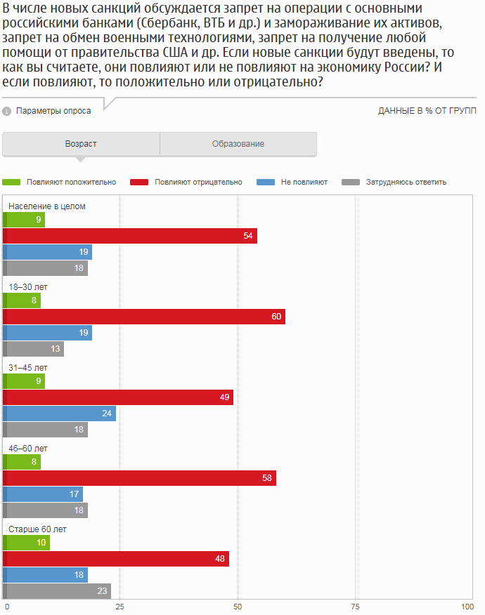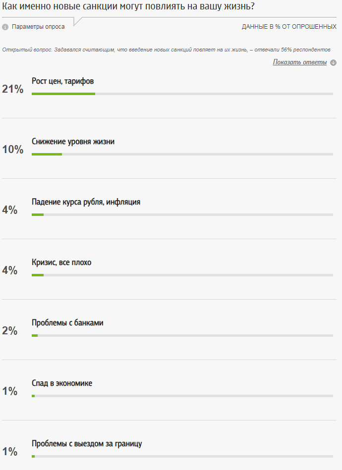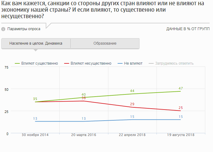 19 августа Фонд общественное мнение (ФОМ) опросил 1500 жителей РФ, пытаясь узнать, что они думают о санкциях со стороны США в отношении России.