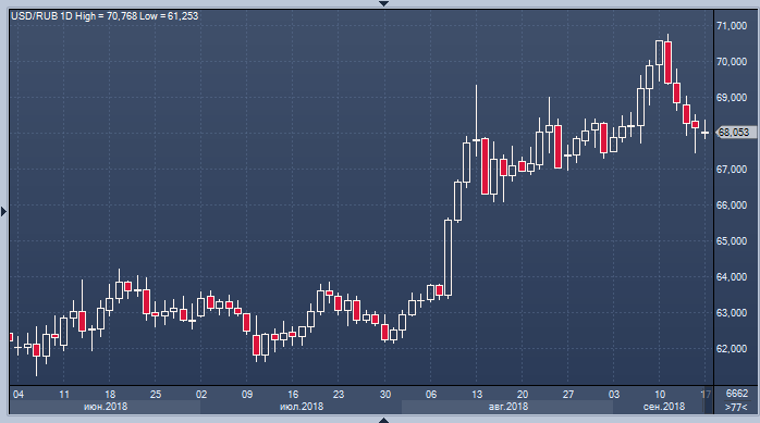 С учетом расчетов Банка России по эффекту переноса курса рубля на инфляцию, его ослабление в первом квартале 2019 года может составить 8%, то есть до 74 рублей за доллар, подсчитали аналитики Raiffeisenbank. Вероятнее всего, ЦБ неявно учитывает ужесточение санкций против России, что, по версии Райффайзенбанка, может потребовать дальнейшего подъема ключевой ставки в ближайшие месяцы.
