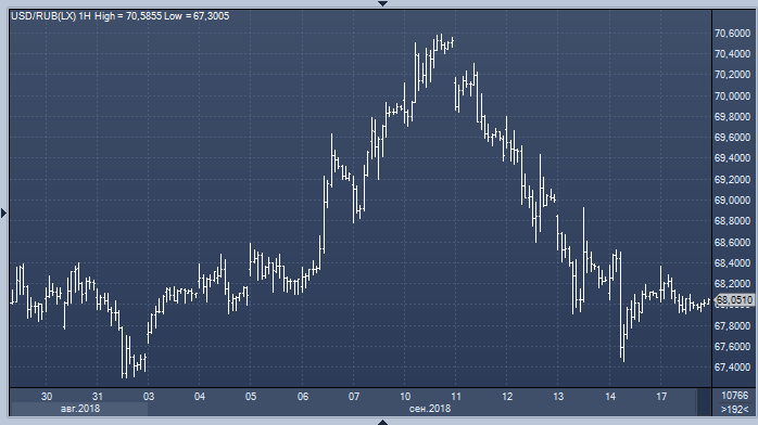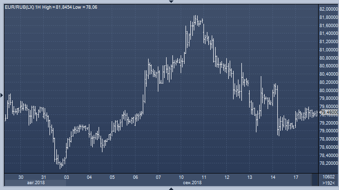 Сессию понедельника рубль провел в очень узких по недавним меркам диапазонах к доллару и евро. В целом, это неудивительно, учитывая отсутствие новых значимых драйверов, стабильные цены на нефть и окончание распродажи активов развивающихся стран. США с Китаем готовятся продолжать торговую войну, но рынки пока этот фактор игнорируют, а сообщение ТАСС о том, что США обвинили Россию в причастности к убийству старшего брата Ким Чен Ына, оказались лишь следствием неправильного перевода слов Никки Хейли. Несмотря на то, что в пятницу Банк России неожиданно повысил ключевую ставку и участники рынка должны были бы продолжить корректировать свои позиции в рубле, торги на Московской бирже прошли на довольно низких объемах. В целом, курс рубля следовал за динамикой евро/доллара.