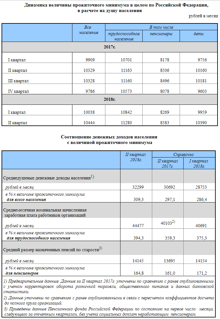 Прожиточный минимум во втором квартале текущего года вырос до 10 444 рублей на человека (против 10 038 рублей кварталом ранее). Среднедушевые денежные доходы в России во втором квартале текущего года выросли до 32 300 рублей (против 28 800 рублей кварталом ранее).