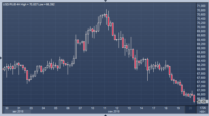 Есть шанс, что на этом рост российских активов, закончится. Сегодня экспирация сентябрьских опционов и фьючерсов. РТС аккурат загнали под 200-дневное скользящее среднее значение. Активный рост российских активов в последнее время подтверждает мнение о том, что санкции в их динамике - не главное. Главное - общее движение рисковых активов, в том числе валют ЕМ. Рисковые активы растут второй день, проигнорировав эскалацию торговой войны США и Китая. Есть разные точки зрения на причину этого, но факт остается фактом. Также они игнорируют повышение доходности US Treasuries. 10-летние бумаги снижаются, а их доходность выросла на 2 базисных пункта, до 3.08%, вновь приблизившись к максимуму за семь лет - 3,109%. Доходность 2-летних бондов США находится на самом высоком уровне за 10 лет, более 2.8%. Тем не менее, курс доллара падает на форексе.