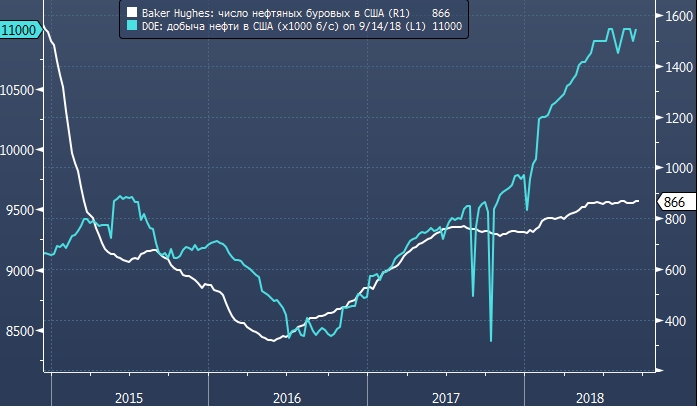 - число буровых на нефтяных месторождениях сократилось на 1 единицу до 866 при прогнозе в 865 штук