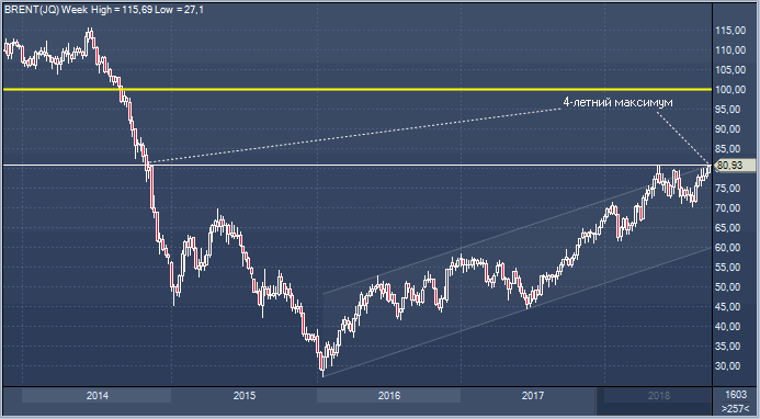 Стоимость барреля нефти Brent на торгах в Лондоне в понедельник 24 сентября достигла отметки $80.93. Это максимальная цена с ноября 2014 года.