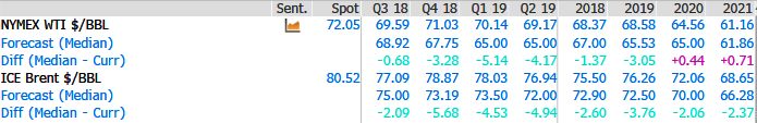 При этом актуальный средний прогноз экспертов, которые участвуют в опросе агентства Bloomberg, в настоящий момент предполагает, что Brent в обозримом будущем не будет стоить дороже $80 за баррель. Возможно, если таковое случится, многие эксперты пересмотрят свое отношение к перспективам цен на нефть.