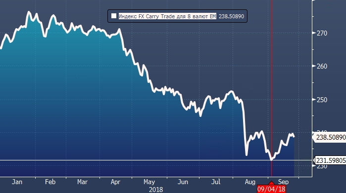 Многострадальные инвесторы, применяющие торговую тактику игры на разнице процентных ставок (Carry Trade, кэрри-трейд) с валютами развивающихся стран, могут вздохнуть с облегчением: в этом месяце стратегия принесла доход почти в 2%, а потери с начала года сократились примерно до 10%, свидетельствует индекс Bloomberg. Отскок произошел на фоне действий центробанков развивающихся стран (EM). Так ЦБ Турции поднял ставку с 17.75% до 24%, а ЦБ Аргентины с 45% до 60%. Хотя Citigroup Inc. не готов говорить о завершении распродажи на развивающихся рынках с учетом высокого спроса на доллары, он все же допускает, что "значительные денежные позиции и ценовые дисбалансы" могут вызвать кратковременное ралли активов ЕМ.