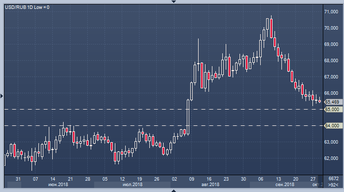 "Фундаментальные факторы, определяющие курс рубля к иностранным валютам (значительное положительное сальдо текущего счета, устойчивые показатели государственных финансов, экономический рост), остаются благоприятными. В этих условиях Минэкономразвития России ожидает возвращения обменного курса рубля к уровням 64-65 рублей за доллар в октябре-декабре 2018 года", - указывается в тексте прогноза.