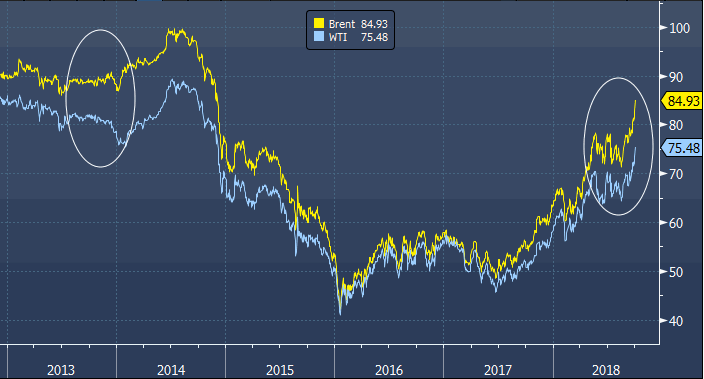 Аналитики товарного рынка из Citigroup предупредили инвесторов рынка нефти о том, что разница в ценах между бенчмарками Brent и WTI рискует стать самой существенной с 2013 года. В банке прогнозирует расширение спрэда между Brent и WTI до 15 долларов за баррель. Это произойдет потому, что запасы в крупнейшем американском нефтехранилище Кушинг (в Оклахоме) будут скапливаться высокими темпами.