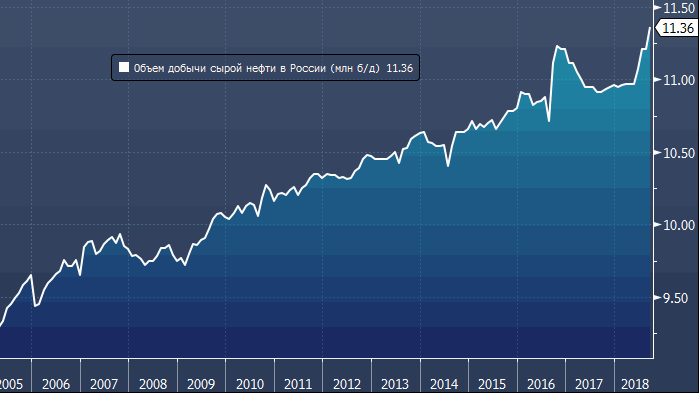 РФ увеличила добычу (+150 000 б/д) в рамках соглашения с ОПЕК, которая также пользуется растущими ценами и в сентябре добывала на 30 000 б/д больше, чем в августе. Таким образом, теперь Россия добывает на 0.1 млн б/д больше, чем накануне заключения соглашения ОПЕК+ в конце 2016 года. Кроме того, эти цифры превышают и июньский прогноз министра энергетики РФ Александра Новака, который предполагал, что объем добычи в России во втором полугодии превысит квоту, установленную для нее в рамках ОПЕК+, лишь на на 200 000 б/д. Впрочем, позже чиновник уточнил, что в стране есть свободные мощности, с помощью которых можно увеличить добычу еще на «несколько сотен тысяч баррелей в день».