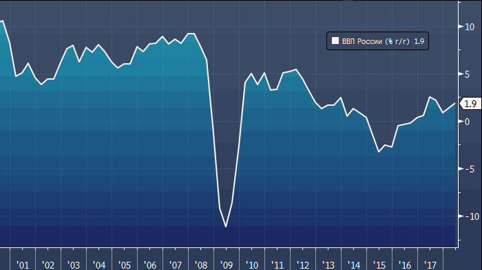 «В ответ на слабый потребительский тренд 2К18 российские компании замедлили темпы прироста запасов: если бы рост запасов сохранился на том же уровне что и в 2К17, ВВП за 2К18 вырос бы примерно на 3.0% г/г», - пишет госпожа Орлова. - «Более слабое потребление и замедление роста запасов вызвало снижение импорта – его рост замедлился до 2.8% г/г в 2К18 с 9.6% г/г в 1К18.В итоге за счет того, что рост экспорта оставался на уровне примерно 7% г/г (6.7% г/г в 1К18 и 7.3% г/г в 2К18), цифры по чистому экспорту оказались очень сильными. Хотя это позитивный фактор, опасения в то же время вызывает замедление роста потребления. Оно произошло слишком рано, и темпы потребления куда слабее, чем ожидалось».
