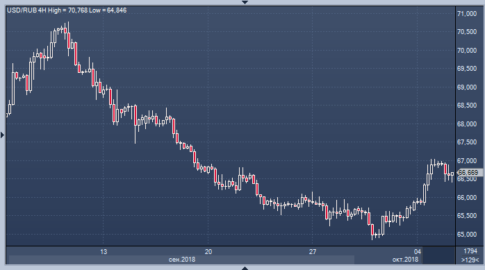 "В сложившихся условиях мы полагаем, что Минфин воздержится от возвращения на внутренний рынок и отложит размещение ОФЗ до момента полноценного разрешения вопросов санкционной риторики. На наш взгляд, наиболее существенным фактором поддержки рубля остается повышенная ценовая конъюнктура нефтяного рынка, котировки черного золота на следующей неделе, вероятно, сохранят свои позиции. Ожидаем, что курс рубля в течение следующей неделе будет находиться в диапазоне 65.2-67.7", - написали эксперты.