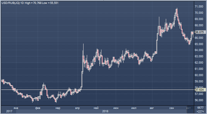 Новые санкции со стороны США не будут приняты в наиболее жестком сценарии. Штаты не запретят покупку российского госдолга, считают Хидэтоши Хонда из Mizuho и Хенрик Гуллберг из Nomura. Оба эксперта прогнозируют, что курс доллара к рублю до конца 2018 года снизится до 65.00.