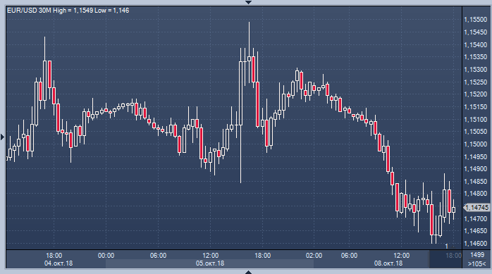 Евро снижается на фоне слабых данных из Германии, где промпроизводство в августе сократилось на 0.3% по сравнению с июлем, хотя аналитики, напротив, ожидали роста на 0.4%. Курс евро снижается к доллару на фоне роста доходности гособлигаций Италии на фоне ситуации вокруг бюджета страны, свидетельствуют данные торгов и комментарии аналитиков. По состоянию на 18:05 мск курс евро к доллару снижался до 1.1474 доллара за евро с уровня предыдущего закрытия в 1.1524 доллара за евро. Курс доллара к иене опускался до 113.11 иены за доллар со 113.72 иены. Индекс доллара (курс доллара к корзине валют шести стран - основных торговых партнеров США) растет на 0.24% до 95.85 пункта.