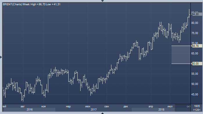 Ожидается, что в текущем году средняя цена барреля черного золота составит $69.38, что выше весеннего прогноза МВФ в $62.30 и средней цены 2017 года в $52.80. По прогнозам, мировое предложение нефти будет постепенно увеличиваться, что приведет к снижению котировок черного золота с $68.78 в 2019 году до $60 в 2023 году.
