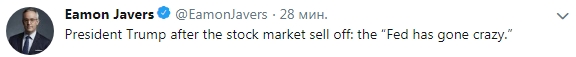 В последней записи в своем твиттере господин Джеверс вновь цитирует Дональда Трампа, который, комментируя обвал фондового рынка, сообщил, что «ФРС сошла с ума».
